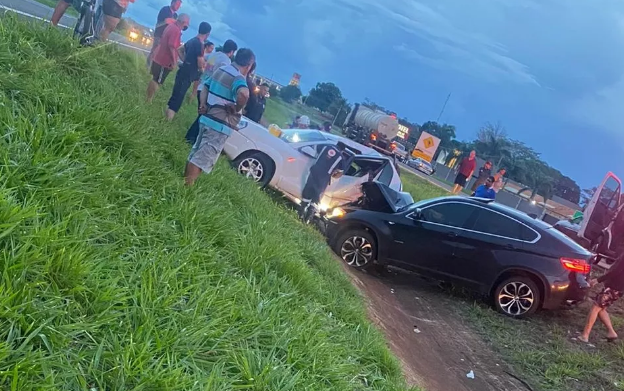 De acordo com a Polícia Rodoviária Estadual, um carro modelo BMW, em alta velocidade seguia sentido Santa Fé do Sul a Jales, quando bateu na traseira de um Tucson.