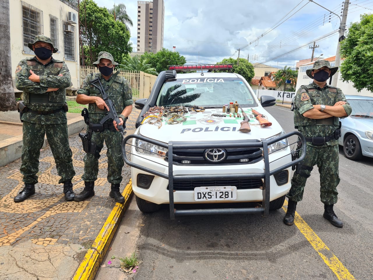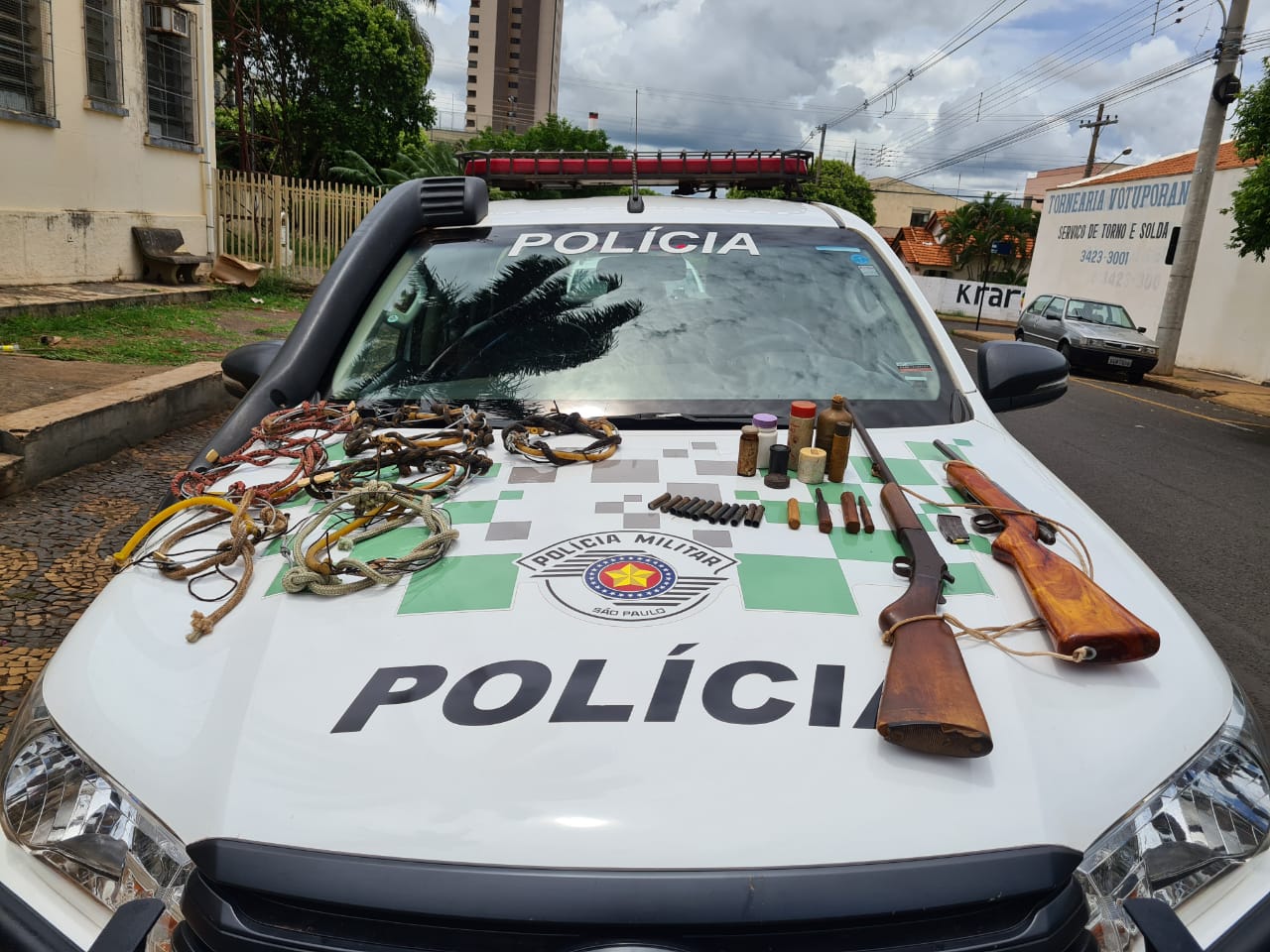 Um homem foi preso em flagrante com armas, munições e instrumentos de caça em Nhandeara, no último sábado, 12.