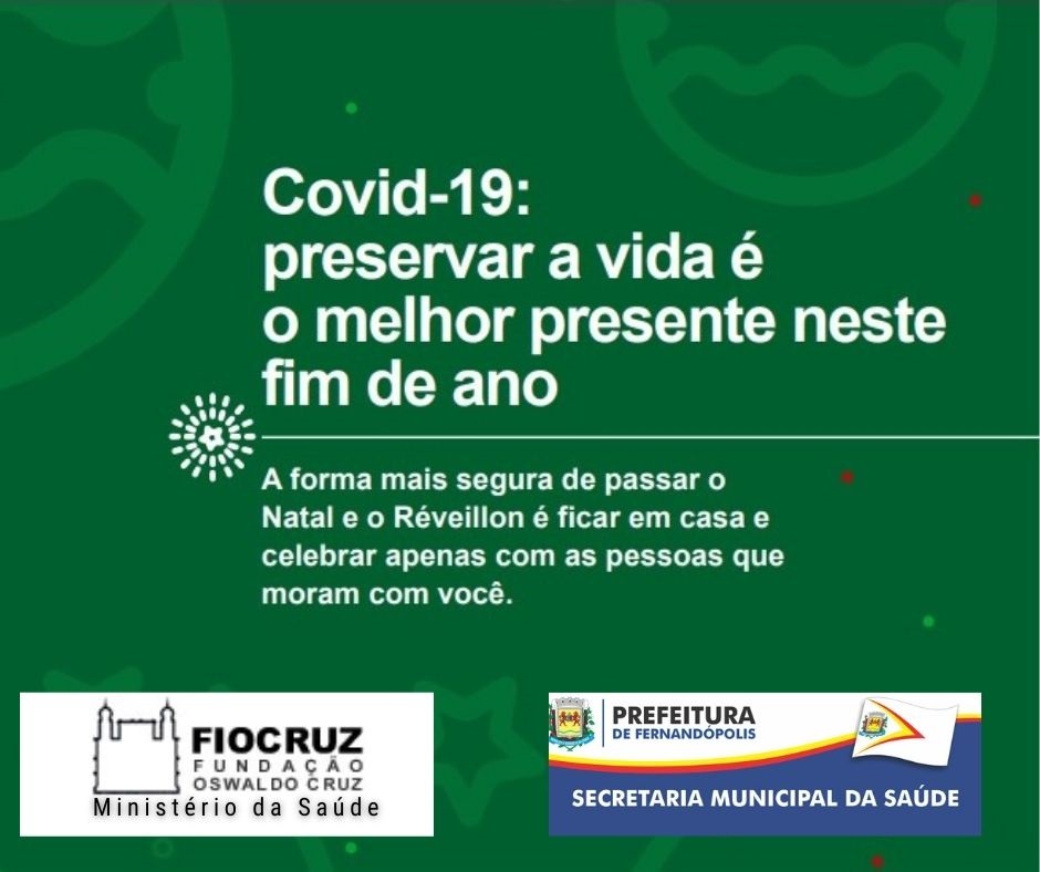 A Secretaria Municipal de Saúde de Fernandópolis tem divulgado uma série de cuidados para evitar a contaminação pelo Coronavírus (Covid-19) durante as festas de final de ano. As orientações foram organizadas pelas articuladoras dos Programas da Atenção Básica, Selma Assunção Toledo e Ana Carolina Collaço, com base na cartilha elaborada pela Fundação Oswaldo Cruz (Fiocruz), que tem como tema: “preservar a vida é o melhor presente neste fim de ano”.
