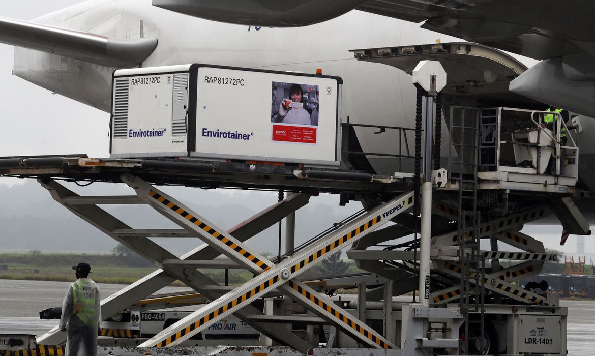 É o terceiro e maior lote de vacinas que chega à América Latina - Foto: Reuters/Amanda Parobelli