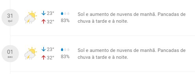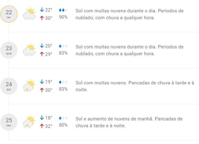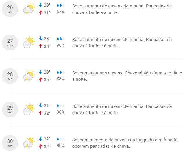 Confira a previsão completa para os próximos dias: