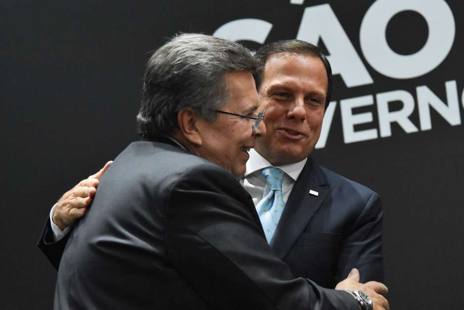 Pignatari e Doria em efusivo abraço durante evento. Foto: Arquivo/Roberto Casimiro / Foto Arena / Estadão
