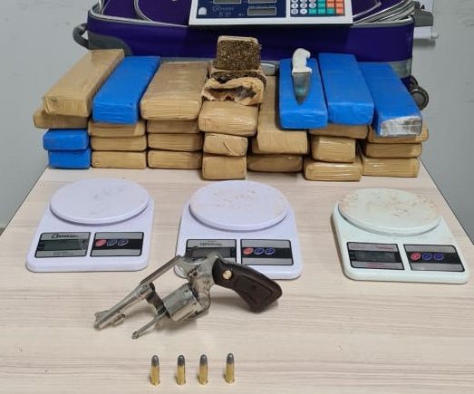 Os agentes encontraram R$ 190 em dinheiro e um tijolo de maconha embalado. Eles seguiram até a casa do pintor, onde encontraram 26 tijolos de maconha, uma arma com munições e várias balanças. O homem disse para os policiais que estava recebendo R$ 1 mil por semana para guardar a maconha para um traficante.