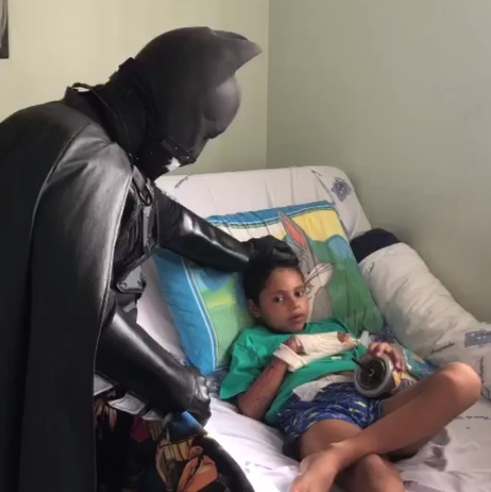 “Quando ele começou a mostrar alguns sinais de melhora, ele já tinha conseguido sair do respirador. Então, cheguei a comentar com a mãe: ‘se ele se recuperar, eu me visto de Batman e vou visitá-lo no hospital’. No dia que eu fiz essa promessa, ele ficou sentado na cama”, conta.