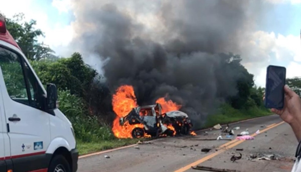 Com o impacto da colisão, o carro da professora Magneir de Souza Oliveira pegou fogo. Ela não resistiu aos ferimentos e morreu no local do acidente.