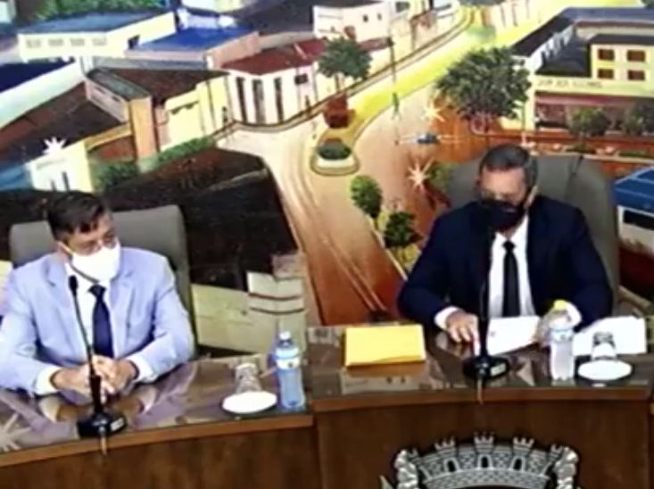Pessuto ao lado do vereador eleito e presidente da sessão, João Paulo Cantarela FOTO: Reprodução Facebook