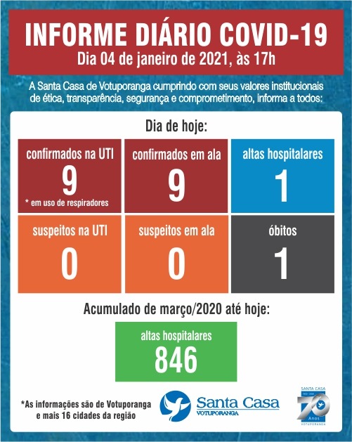 Com o caso de hoje, já são três mortes por covid-19 registradas na Santa Casa de Votuporanga em 2021.