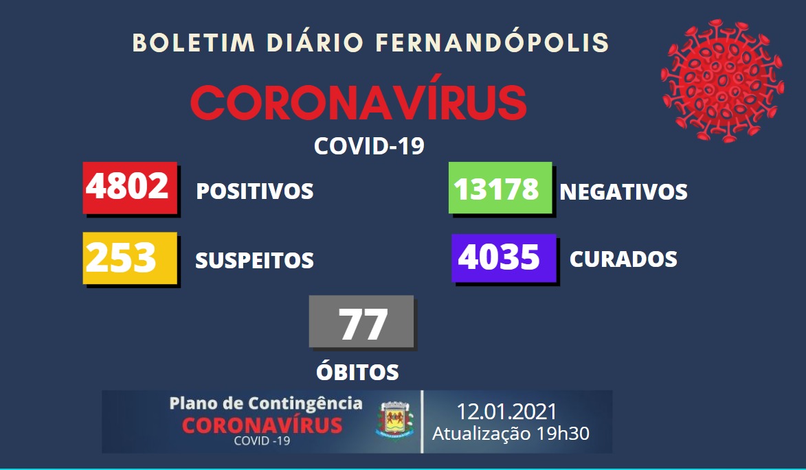 O Boletim Epidemiológico de Fernandópolis desta terça-feira, 11, traz mais 45 casos positivos para coronavírus. O município soma agora 4.802 infectados pela Covid-19.
