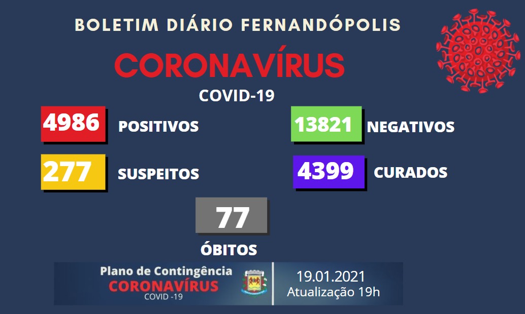 O Boletim Epidemiológico de Fernandópolis desta terça-feira, 19, traz mais 43 casos positivos para coronavírus. O município soma agora 4.986 infectados pela Covid-19.