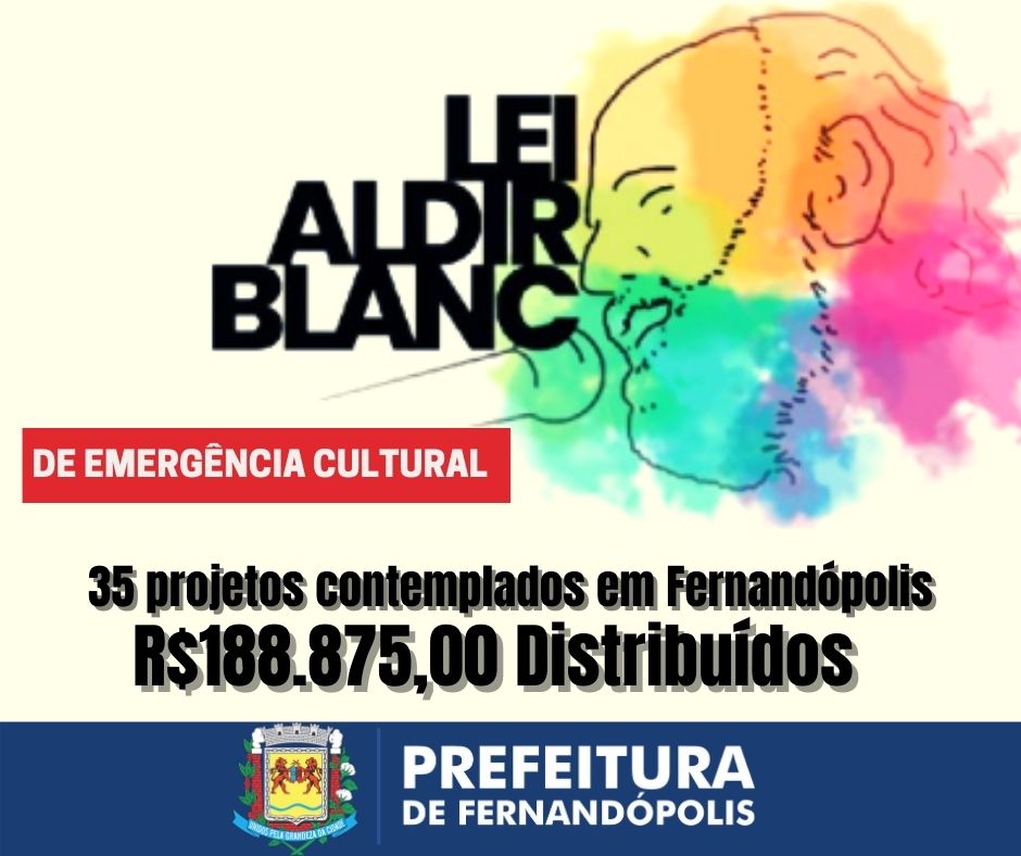 A Secretaria Municipal de Cultura de Fernandópolis realizou nesta semana o pagamento aos contemplados pela Lei Emergencial da Cultura - Aldir Blanc. O Governo Federal disponibilizou R$ 492.000,00 para o município atender a cerca de 170 artistas e artesãos. Porém, nem todas as pessoas cadastradas enviaram projetos, por isso foram beneficiadas 35 propostas cadastradas (seis empresas e 29 artistas), ao todo será distribuído o valor de R$188.875,00.