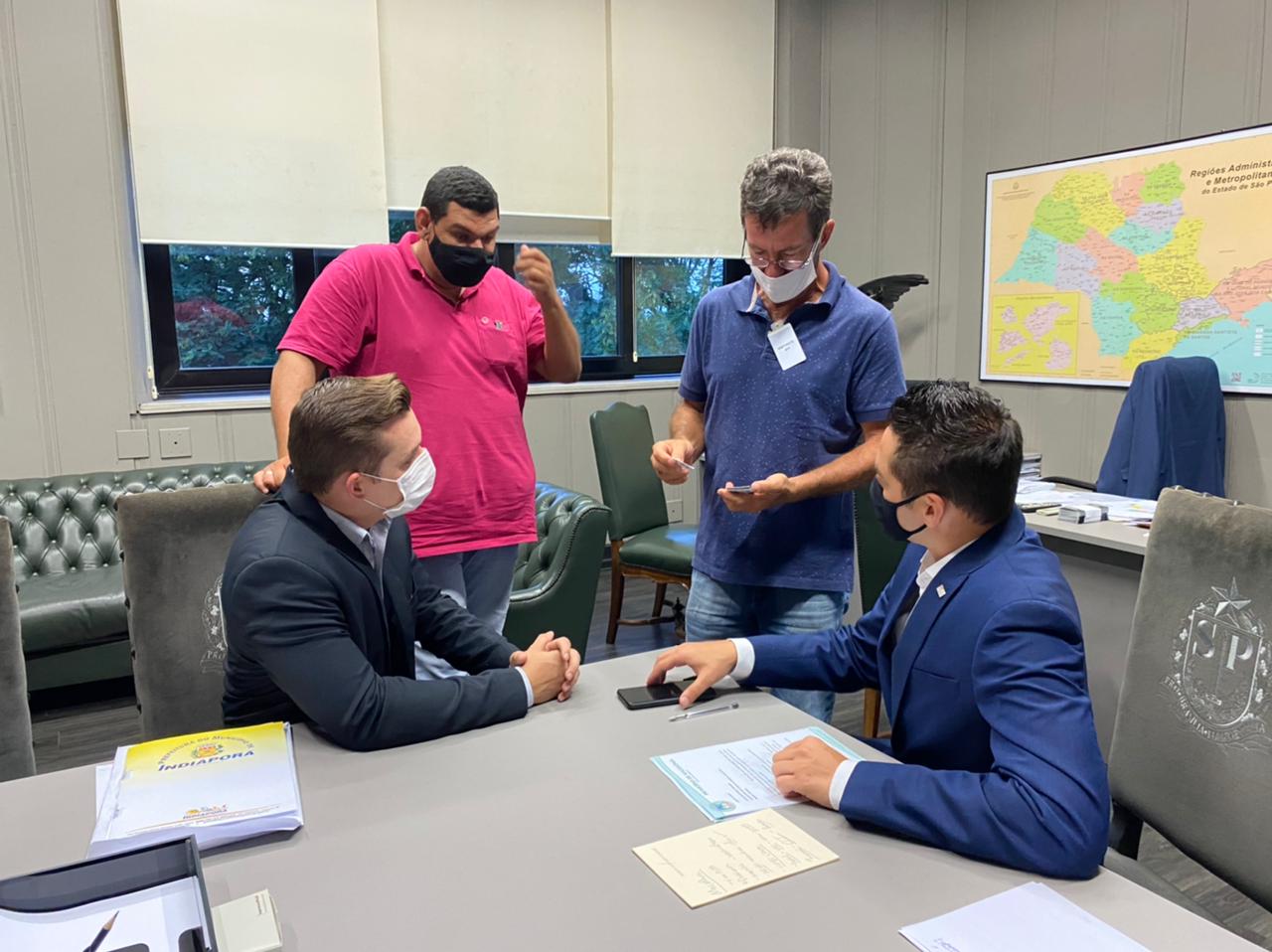 Nesta terça-feira, 26, os prefeitos de Macedônia, Reginaldo Marcomini e Aderito Camargo de Indiaporã, estiveram em reunião no Palácio dos Bandeirantes em São Paulo com o Secretário de Desenvolvimento Sustentável, Marco Vinholi.