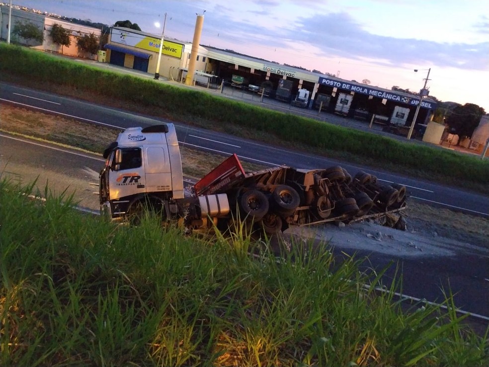 De acordo com a Polícia Rodoviária, o veículo tombou ainda de madrugada, às 5h15. O motorista não ficou ferido.