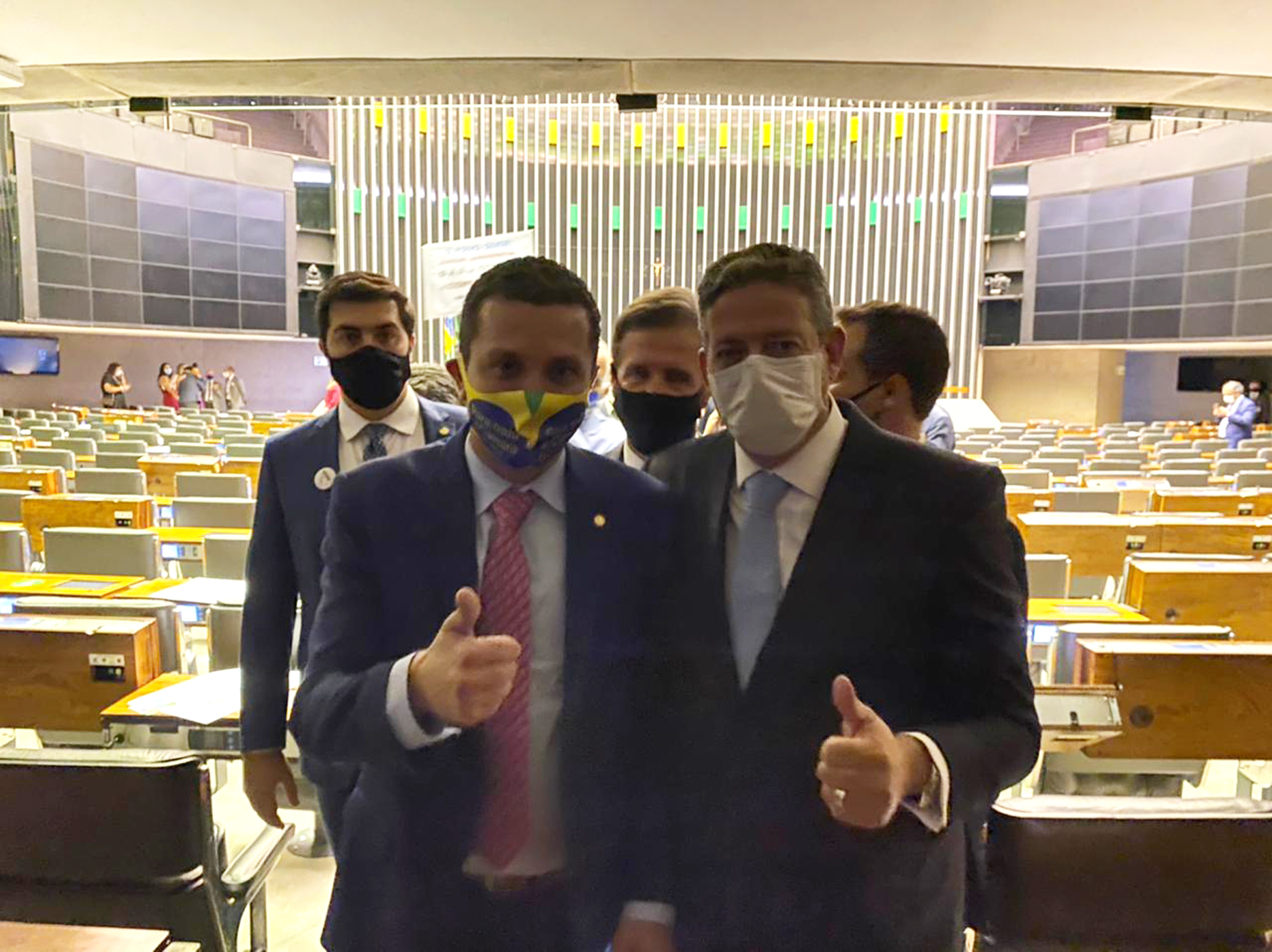 Pinato, junto com o recém-eleito Lira, deixar o Plenário da Câmara dos Deputados. Foto: Assessoria de Imprensa