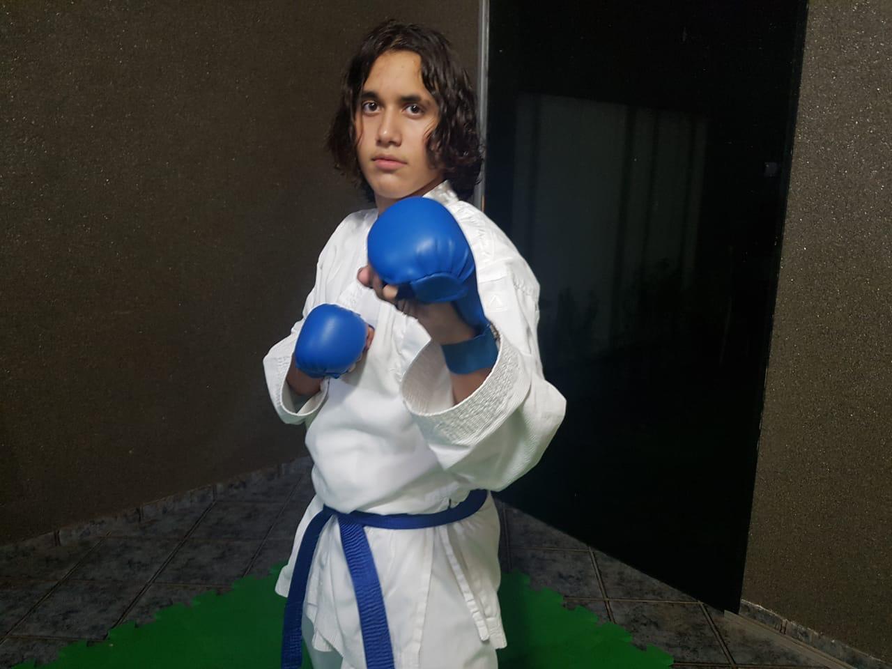 O carateca Enzo Bassi treina forte para o início das competições