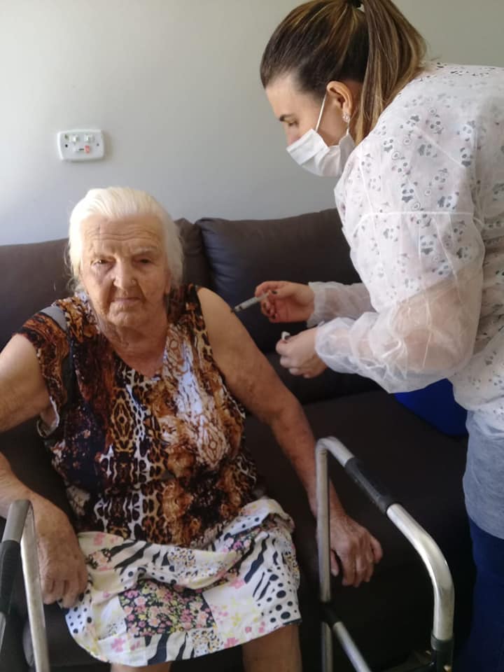 A vacinação está sendo realizada nas residências para garantir mais segurança e comodidade aos idosos.