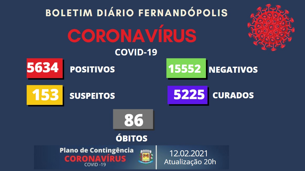 O Boletim Epidemiológico de Fernandópolis desta sexta, 12, traz mais 13 casos positivos para coronavírus. O município soma agora 5.634 infectados pela Covid-19.