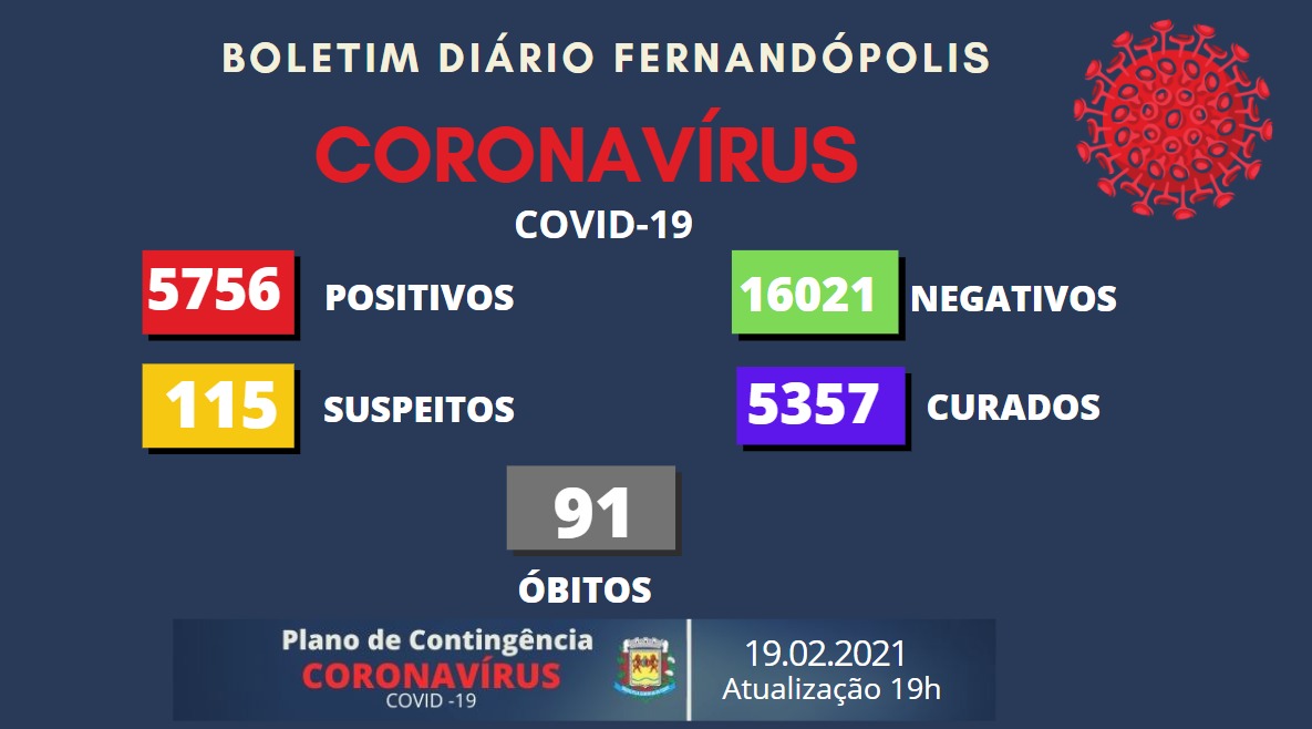 O Boletim Epidemiológico de Fernandópolis desta sexta-feira, 18, traz mais 28 casos positivos para coronavírus. O município soma agora 5.756 infectados pela Covid-19.