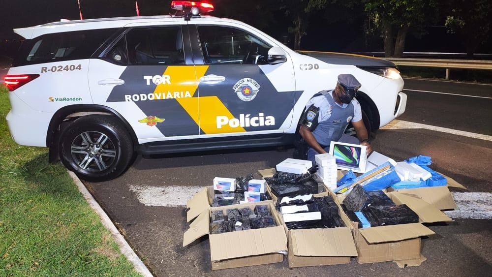 A Polícia Rodoviária de Araçatuba (SP) apreendeu vários celulares, relógios e tabletes contrabandeados neste sábado (20), na rodovia Eliséu Bernabé, em Piacatu (SP).