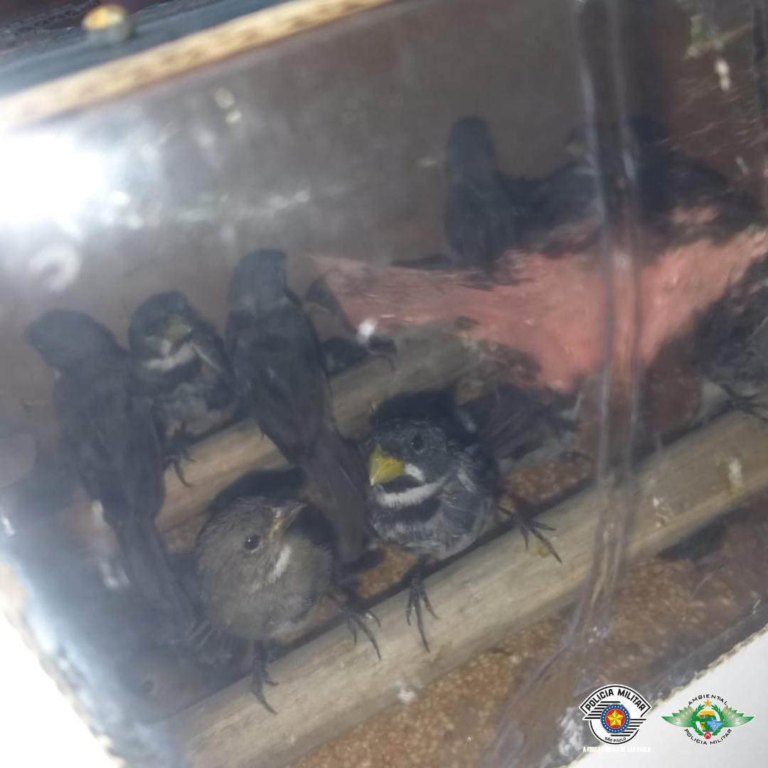 Policiais do 4º Batalhão de Polícia Ambiental apreenderam 112 aves silvestres no município de Adolfo.