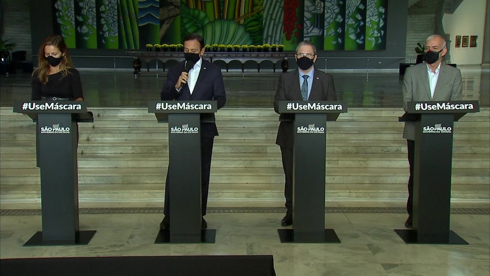 Entrevista coletiva do governo paulista onde as novas medidas foram anunciadas. Fonte: Gov. Est. de SP
