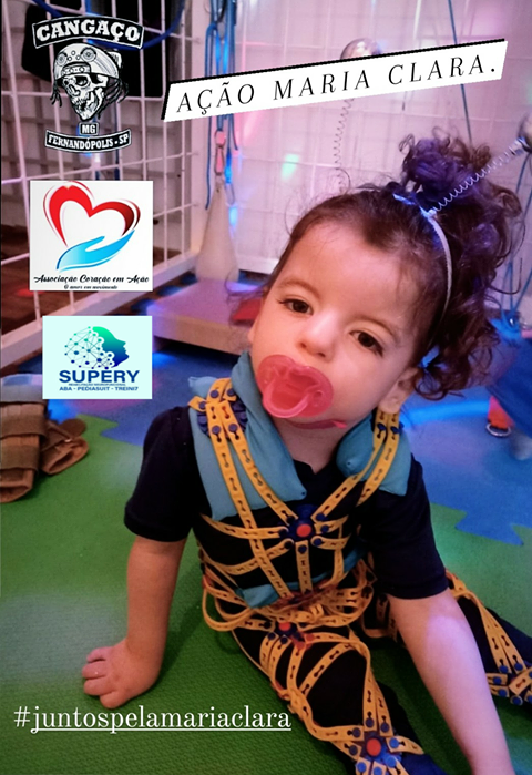 O Cangaço Moto Grupo, de Fernandópolis, com o apoio da Associação Coração em Ação e da Clínica Supery, realiza campanha, nas redes sociais, para arrecadar fundos à família da pequena fernandopolense Maria Clara, de 2 anos, que sofre de uma doença chamada Síndrome de Moebius.