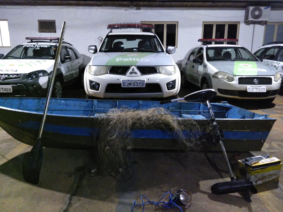 Por volta das 21h40min, os Policiais Militares Ambientais avistaram uma embarcação com dois indivíduos, efetuando a prática de pesca com a utilização de rede de emalhar.
