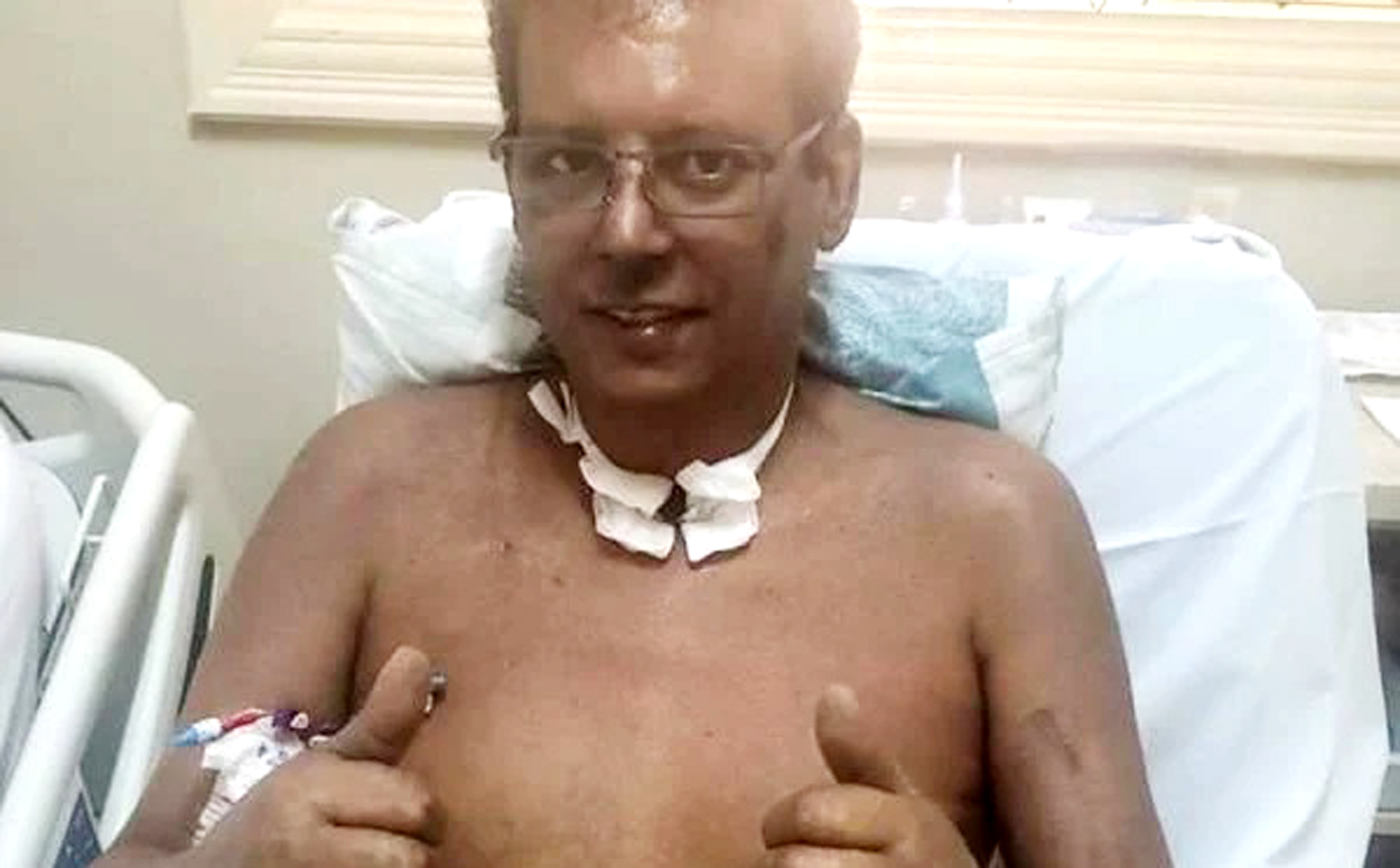 Rogério, ainda durante a internação. História de sorte viralizou somente neste final de semana. Foto: Arquivo pessoal