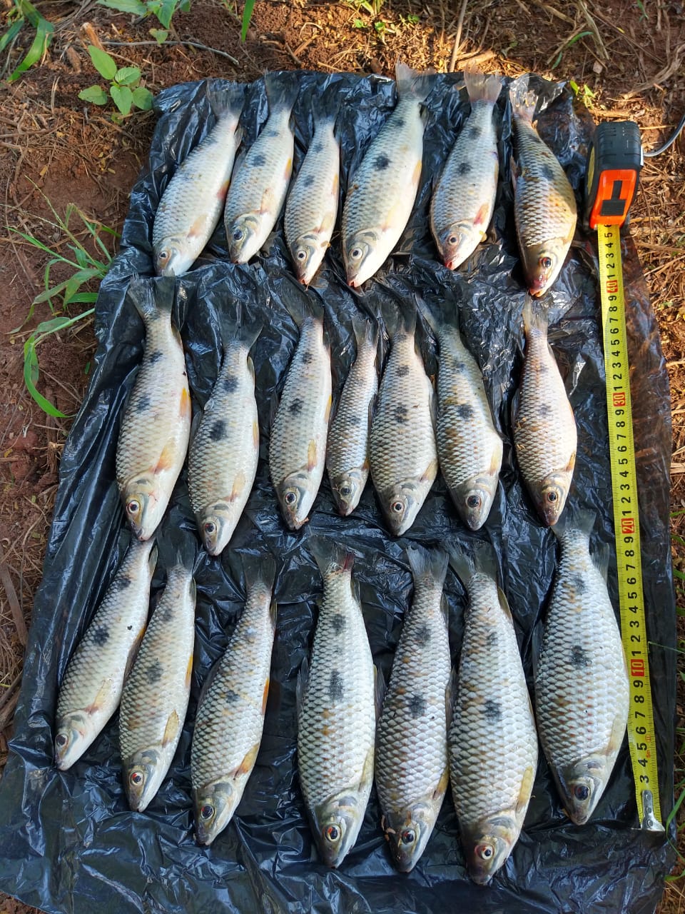 Foi lavrado em seu desfavor do infrator o Auto de Infração Ambiental (multa simples), “por pescar espécimes da fauna ictiológica com os tamanhos inferiores aos permitidos”, no valor de R$ 1.070,90,* sendo os tamanhos mínimos permitidos para a captura do piau-três-pintas (25cm); piapara (40cm) e curimbatá (38cm)".
