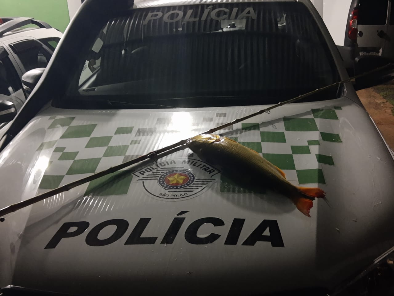 Também no sábado, 13, em Policiamento Ambiental pela Rio Turvo, município de Riolândia, Policiais Militares Ambientais surpreenderam um pescador amador com uma vara de bambu, com linha, anzol, chumbada e, em posse um peixe da espécie Dourado (Salminus brasiliensis), que havia capturado.
