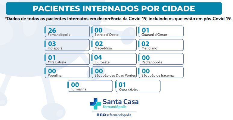 Os dados constantes no informativo referem-se ao registro do número de pacientes internados no horário base de sua elaboração, conforme controle do Núcleo Hospitalar de Epidemiologia da Santa Casa Fernandópolis.