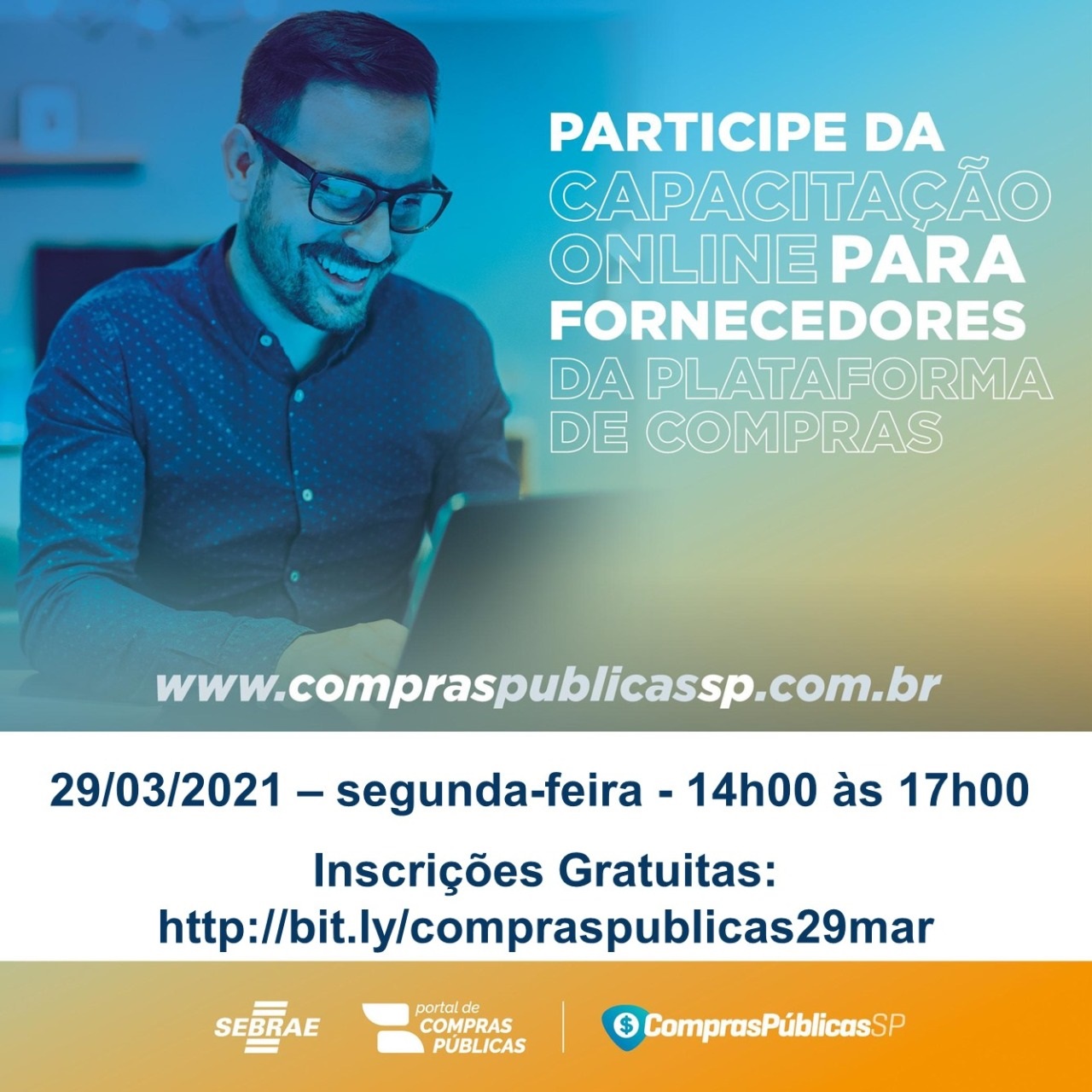 Na próxima segunda-feira, 29 de março, o Sebrae de Fernandópolis, parceiro da Prefeitura de Fernandópolis em diversas capacitações, promoverá um curso de Compras Públicas - voltado para empresários. Trata-se de uma capacitação online para fornecedores da plataforma de compras. A principal proposta é mostrar aos empresários os benefícios, vantagens, oportunidades e como participar das Compras Públicas para o governo/prefeituras e aumentar suas vendas e área de atuação.
