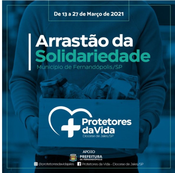 Está em andamento em Fernandópolis e vai até o próximo dia 27 de março o do Arrastão da Solidariedade, projeto Idealizado pelo “Protetores da Vida”, um grupo formado pela Diocese de Jales (Igreja Católica) que mobilizou diversas religiões, associações e clubes de serviço, tonando-se um projeto ecumênico em prol às famílias necessitadas do município.