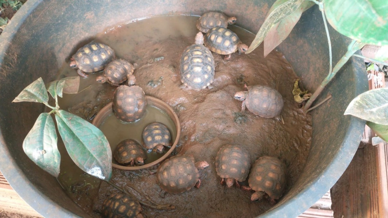 Foram encontrados 15 jabutis, sendo 13 filhotes e 02 animais adultos - Foto: Divulgação/Polícia Ambiental