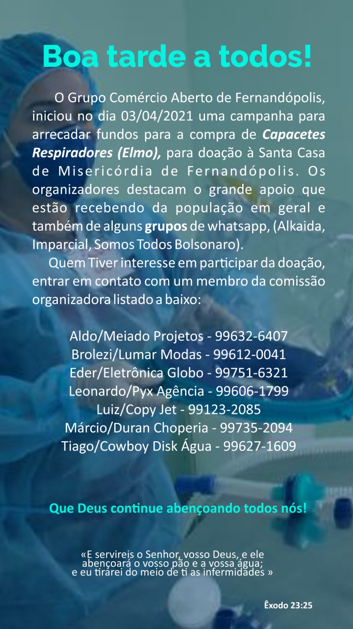 O grupo Comércio Aberto, que organizou recentemente uma manifestação pelo funcionamento do comércio em Fernandópolis, está com uma campanha para a compra de capacetes elmos.