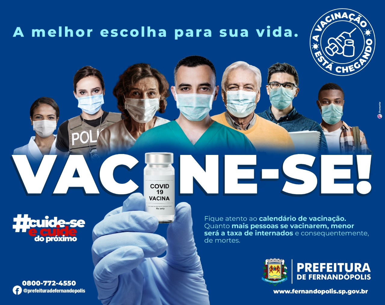 Todas as unidades de Saúde de Fernandópolis realizam a Campanha de Vacinação contra a covid-19. A programação para a aplicação das doses acontece de acordo com o calendário de prioridades estabelecido pelo Ministério da Saúde.