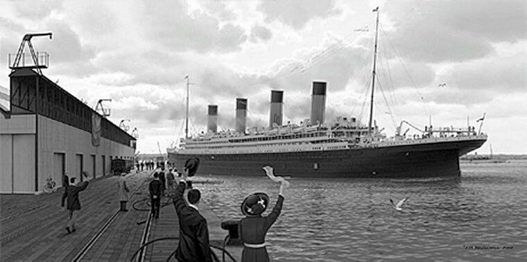 1912 — O RMS Titanic deixa o porto de Southampton (foto abaixo), Inglaterra, em sua primeira e única viagem.