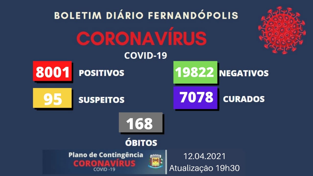 O Boletim Epidemiológico de Fernandópolis desta segunda-feira, 12, traz mais 21 casos positivos para coronavírus. O município soma agora 8.001 infectados.