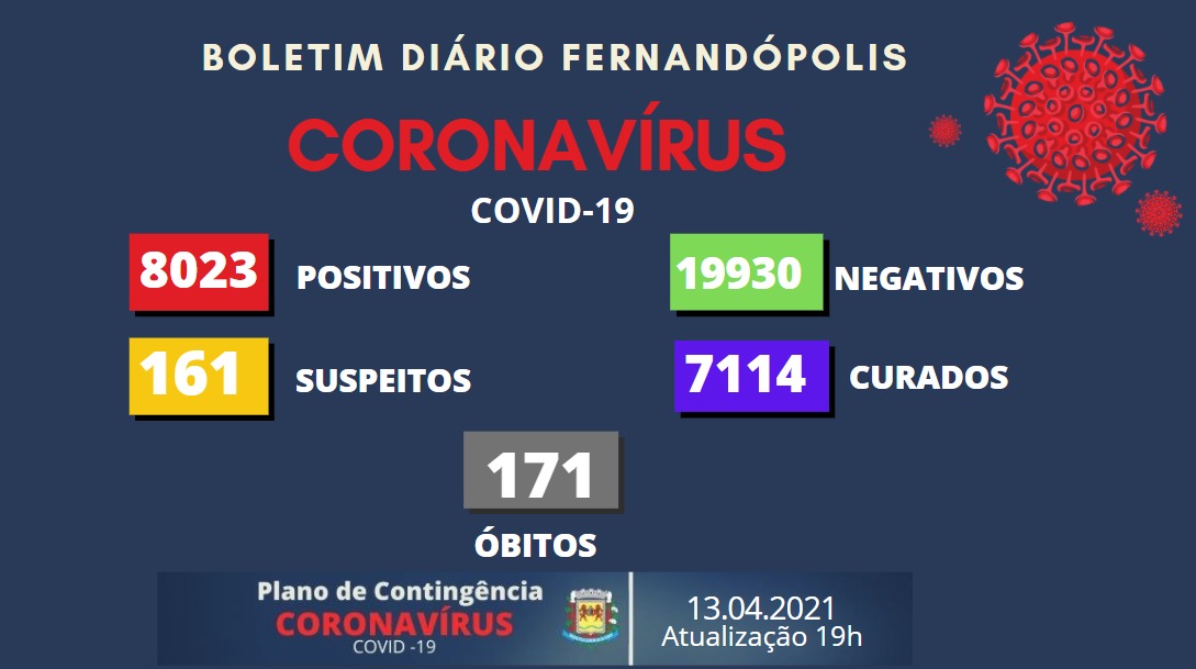 O Boletim Epidemiológico de Fernandópolis desta terça-feira, 13, traz mais 22 casos positivos para coronavírus. O município soma agora 8.023 infectados.