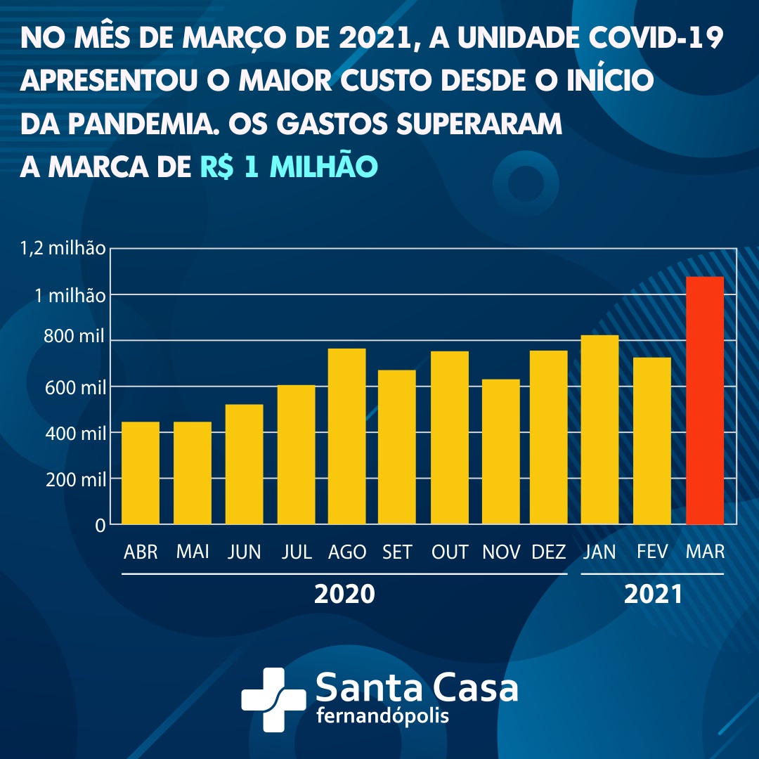 Com maior número de atendimento e a alta de diversos medicamentos, o mês de março foi o que contabilizou maior investimento de recursos financeiros para o combate à Covid-19 pela Santa Casa de Fernandópolis.