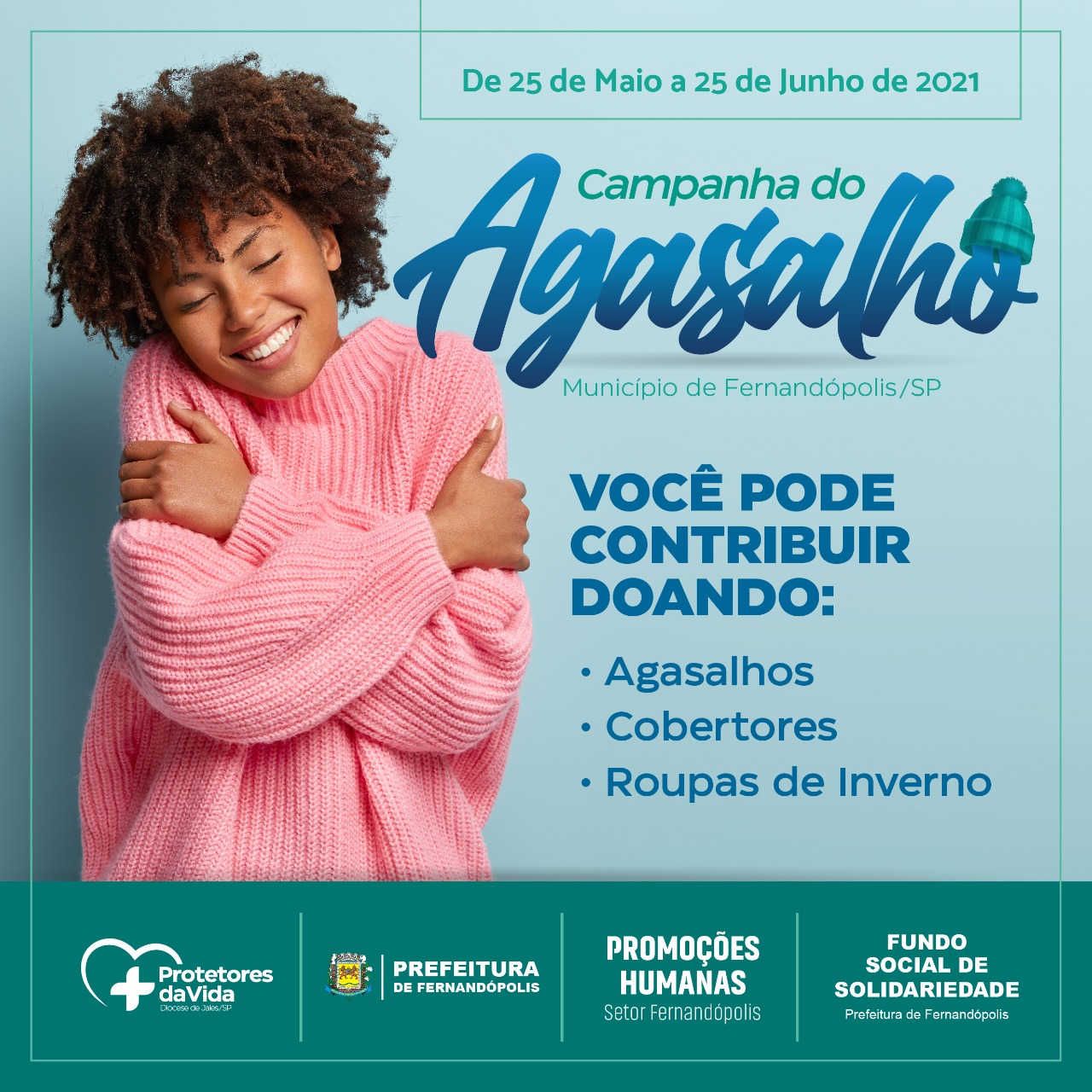 Visando aquecer os dias frios de famílias fernandopolenses, a Prefeitura, por meio do Fundo Social de Solidariedade, promove mais uma edição da Campanha do Agasalho que neste ano conta com a parceira a Diocese de Jales - projeto “Protetores da vida” e “Promoções Humanas”.