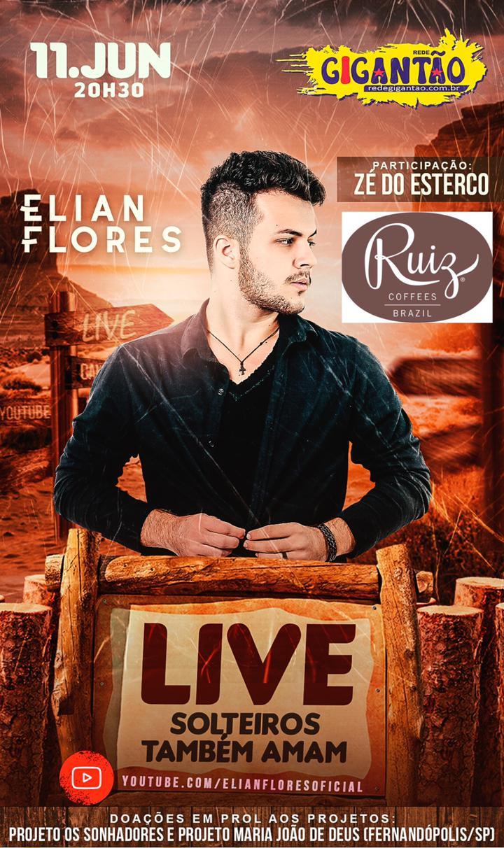 O Cantor Elian Flores realizara a "Live Solteiros Também Amam" nessa sexta-feira, dia 11, às 20h30. O evento acontecerá em seu canal do YouTube.