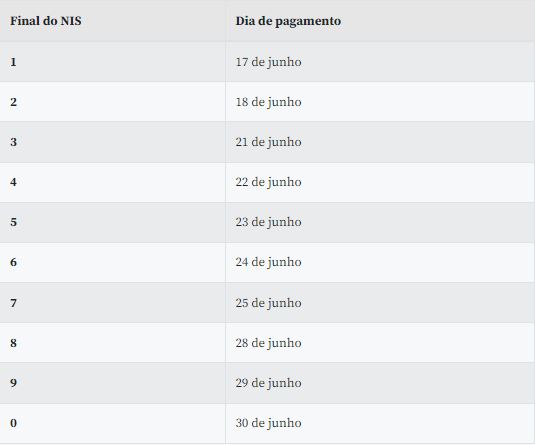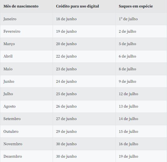 Veja abaixo o calendário de pagamentos para o público geral: