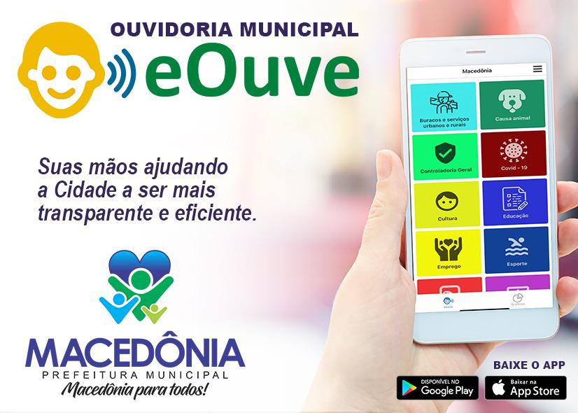 A partir desta quinta-feira, 01, o Município de Macedônia contará com aplicativo voltado para a Ouvidoria (EOuve) que possibilitará ao munícipe oferecer sugestões, críticas, elogios e sanar suas dúvidas, com mais agilidade e praticidade.