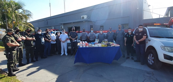 Profissionais da Segurança Pública que atuam na área do 16º Batalhão da Polícia Militar, arrecadaram alimentos durante a campanha de vacinação contra a covid-19. Foram 1.155 profissionais vacinados.