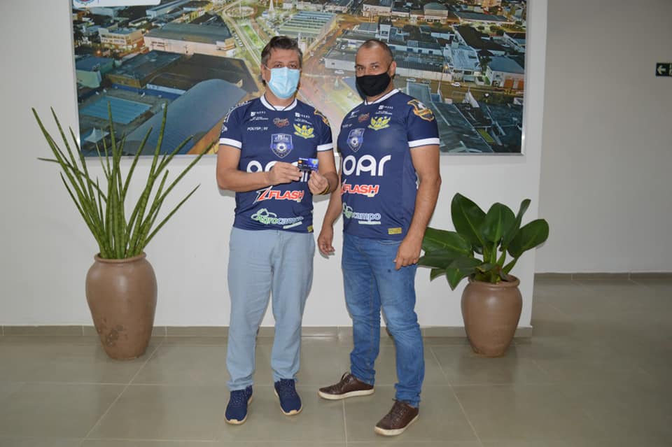 Presidente do Fefecê, Alessandro Gimenes, (à direita) e prefeito André Pessuto, que, simbolicamente, se tornou o primeiro sócio-torcedor do clube em 2021