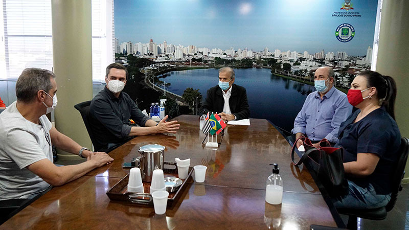 Reunião no gabinete de trabalho de Edinho Araújo, prefeito de Rio Preto: nesta quinta-feira a Procuradoria-geral do Município vai elaborar o decreto estabelecendo os novos horários de acordo com o Plano São Paulo (Foto: SECOM)