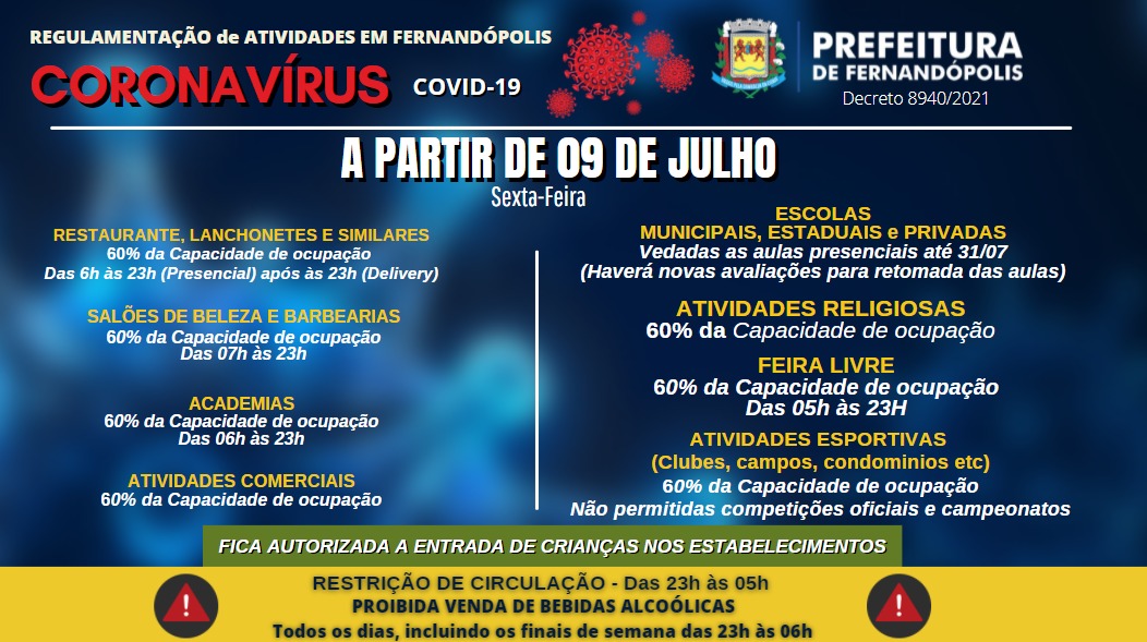 A prefeitura de Fernandópolis publicou nesta quinta-feira, 08, um decreto com novas regras para as atividades comercias e circulação no município, que passam a valer a partir desta sexta-feira, 09.