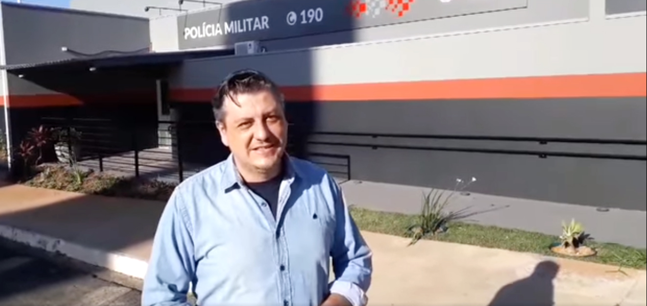 Prefeito André Pessuto em inspeção à nova sede da Polícia Militar em Fernandópolis. Imagem: Reprodução/Facebook
