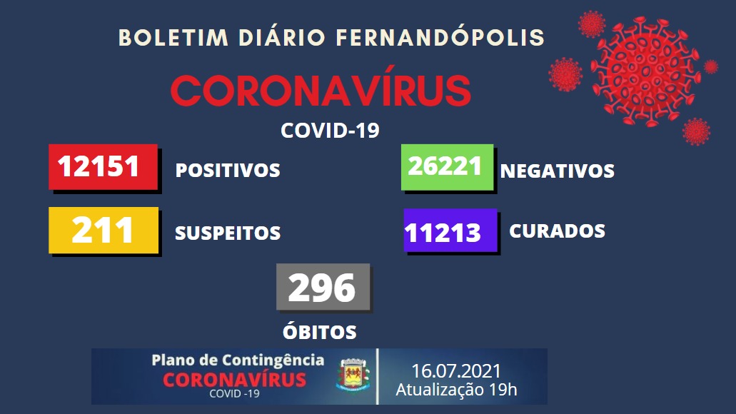 O Boletim Epidemiológico de Fernandópolis desta sexta-feira, 16, traz mais 95 casos positivos para coronavírus. O município chega a 12.151 infectados pela doença.