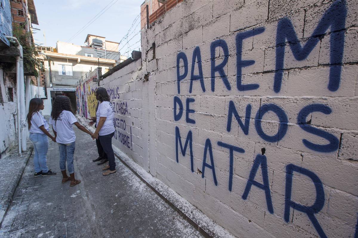 Pichação em Paraisópolis protesta contra a morte de jovens que estavam em baile funk em dezembro de 2019 - Foto: Marlene Bergamo/Folhapress